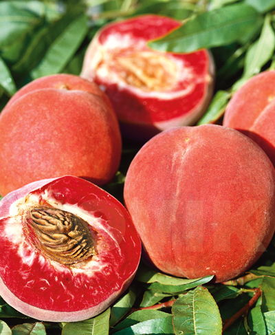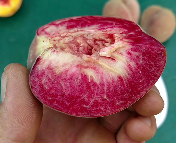 Персик красномʼясистий “Клаудініні” – це ексклюзивний сорт американської селекції Флойд Зайгер. Відрізняється незвичайними плодами глибокого бордового забарвлення з червоною м’якоттю. Сорт преміальний, пізній, урожай приносить в останні тижні вересня. Дерево добре переносить сильні морози (-30°С ) і стійке до різноманітних хвороб.